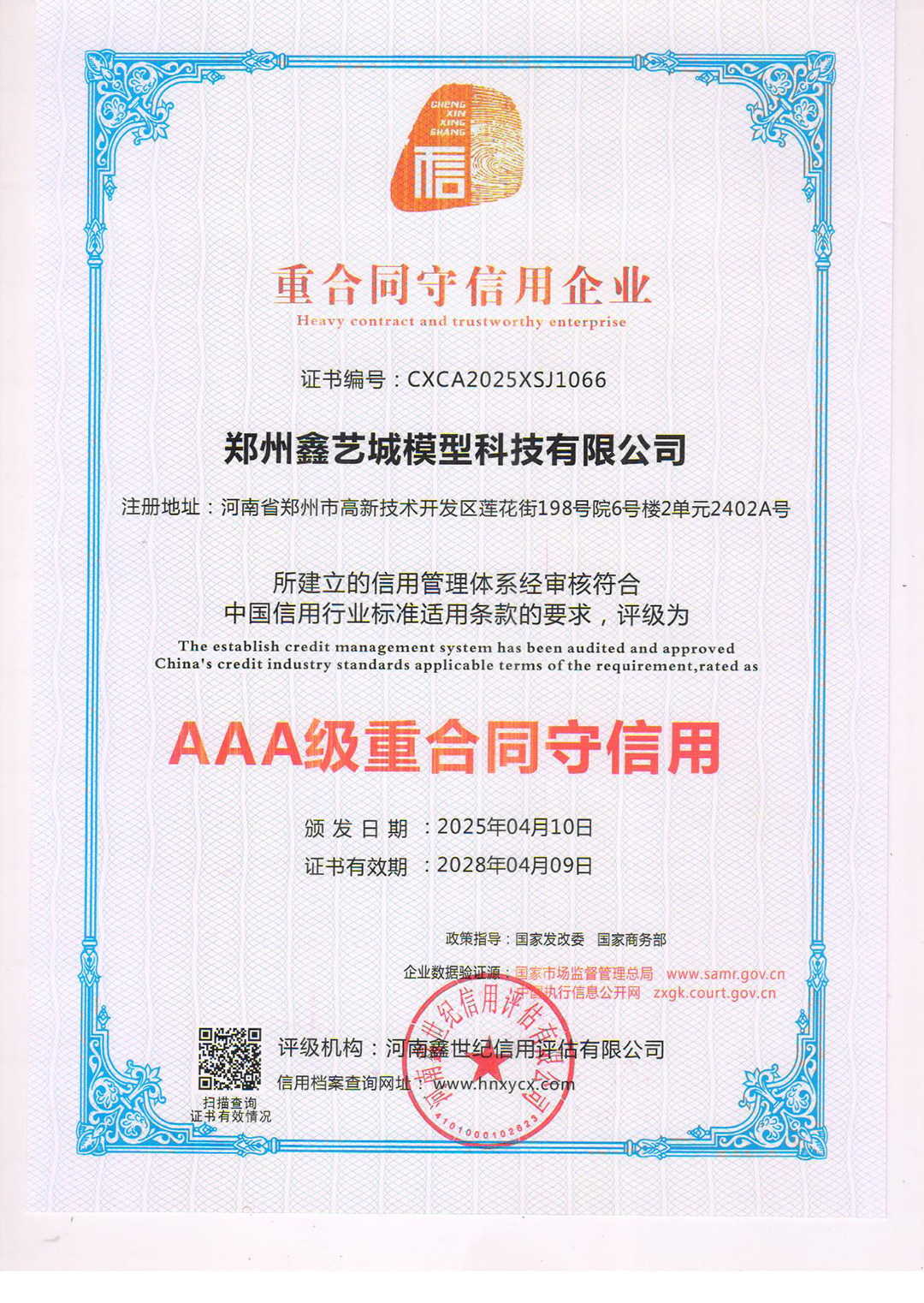 企业等级信用证书