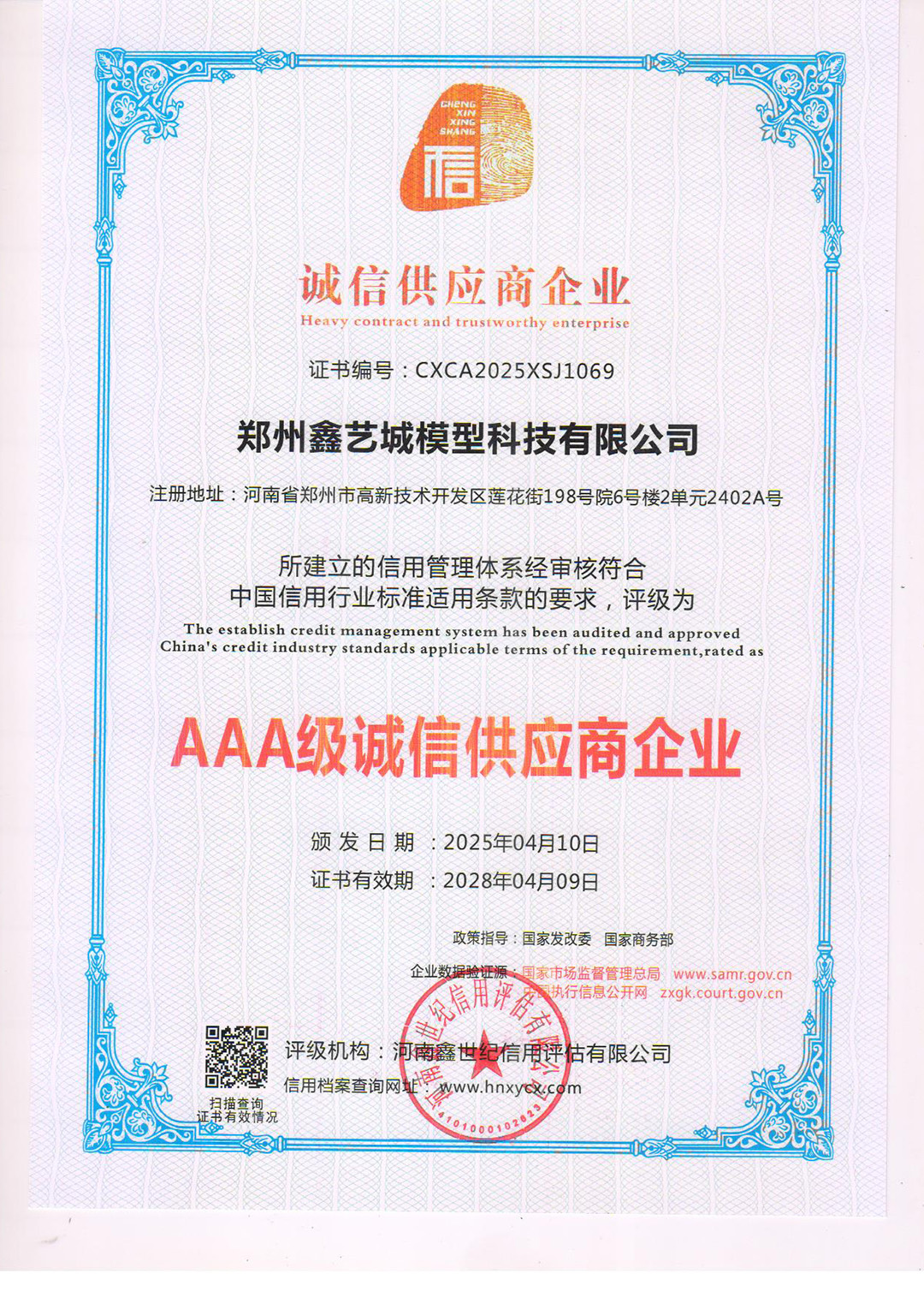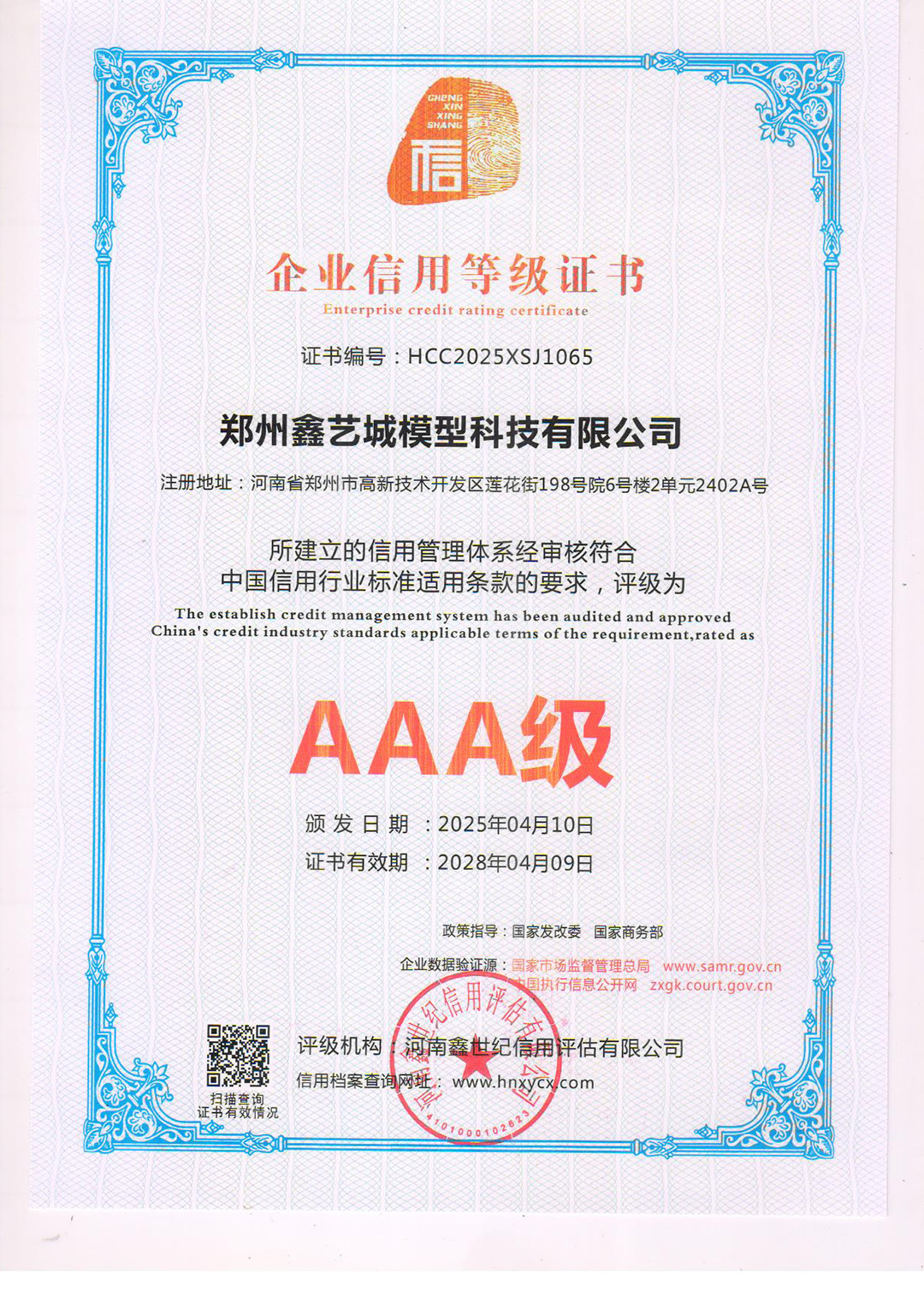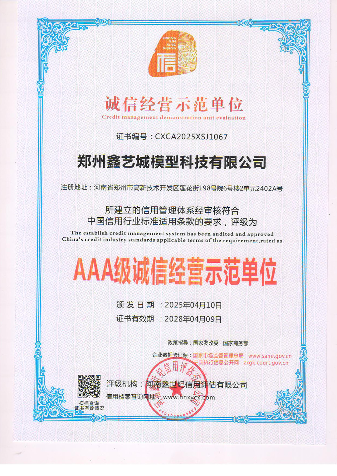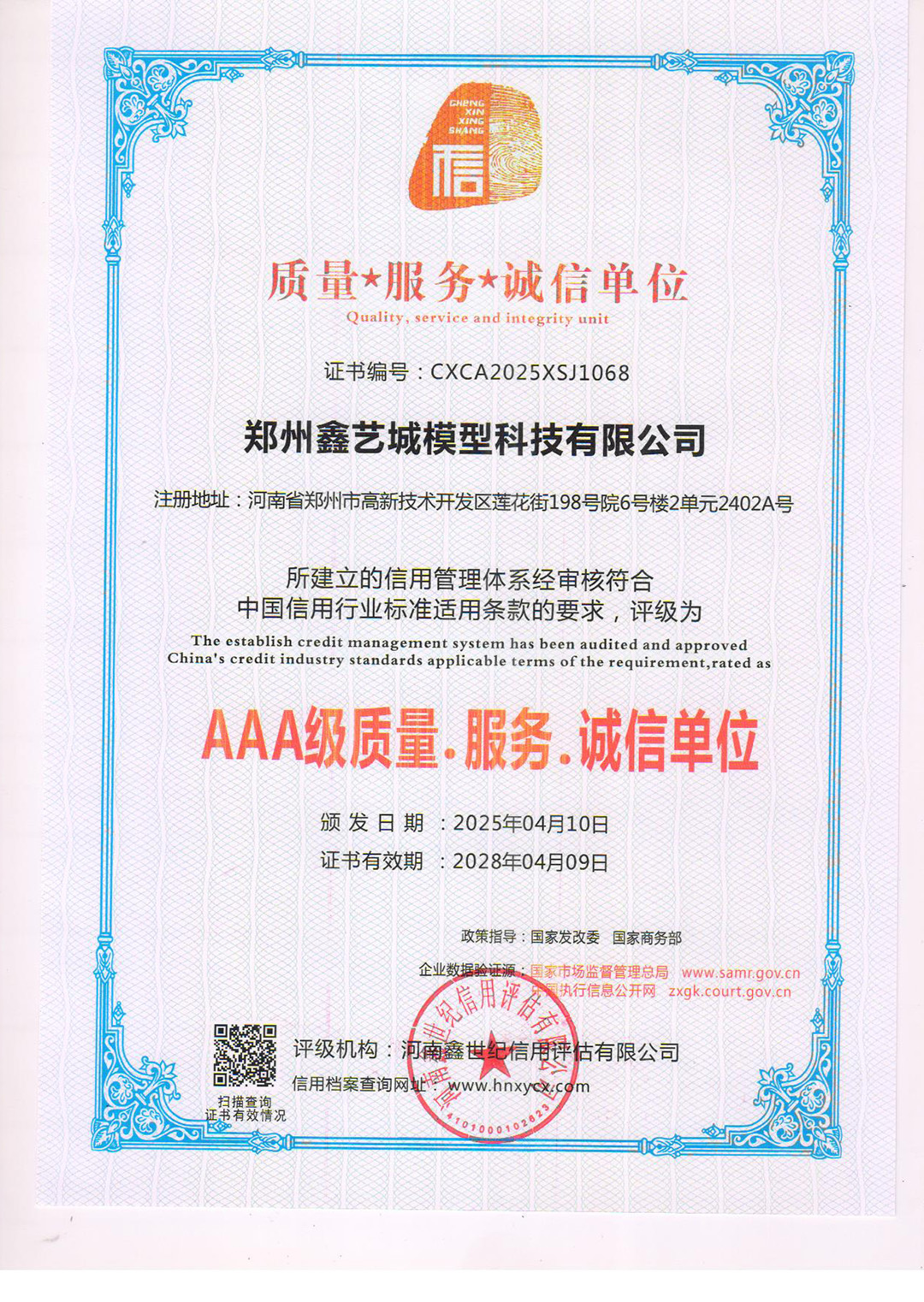 企业等级信用证书